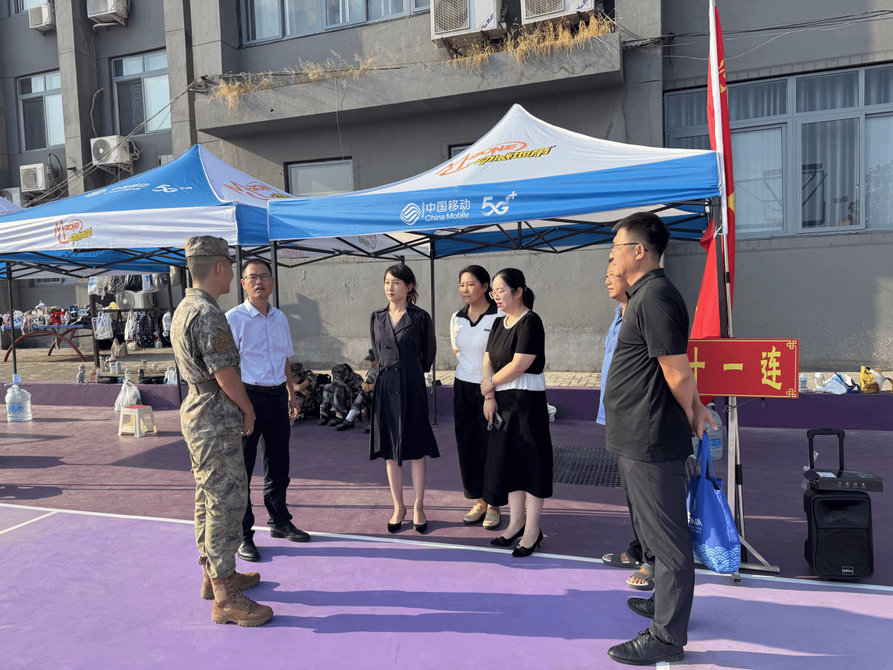 学院领导班子成员及辅导员老师们,亲临军训现场慰问参训师生。党委书记刘佳明、院长邓浩与军训教官进行了深入交流,详细了解了训练进度与学生表现,并对教官们的辛勤付出与科学施训表示衷心感谢。