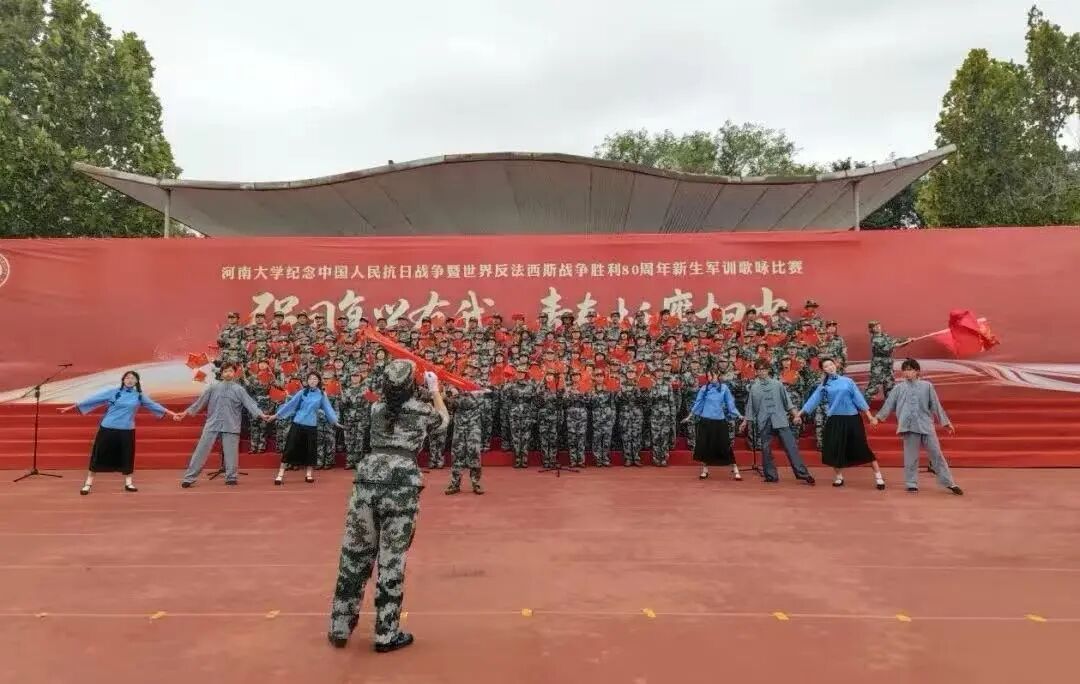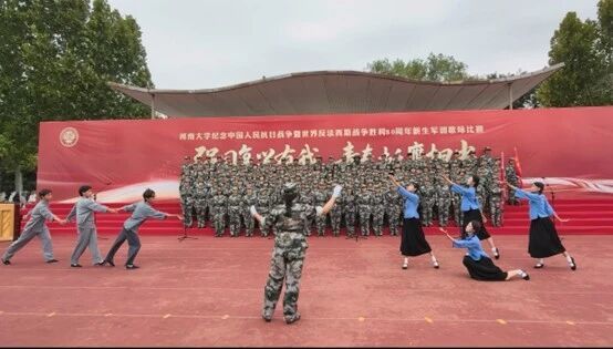 12连同样以《河南大学校歌》点燃全场,紧接着演绎《祖国不会忘记》,气势恢宏、情感浓烈,唱出新时代青年的责任与豪情。两队更在表演中融入创意队形与动作,赢得评委与观众的阵阵掌声。