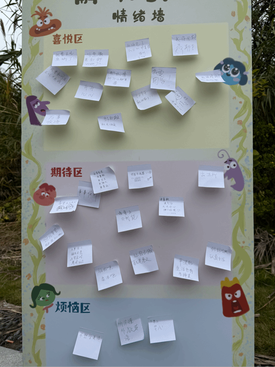 笑脸墙成为同学们表达喜悦、传递温暖的平台,大家用画笔和文字描绘心中的“开心定义”,拉近了彼此的心灵距离。